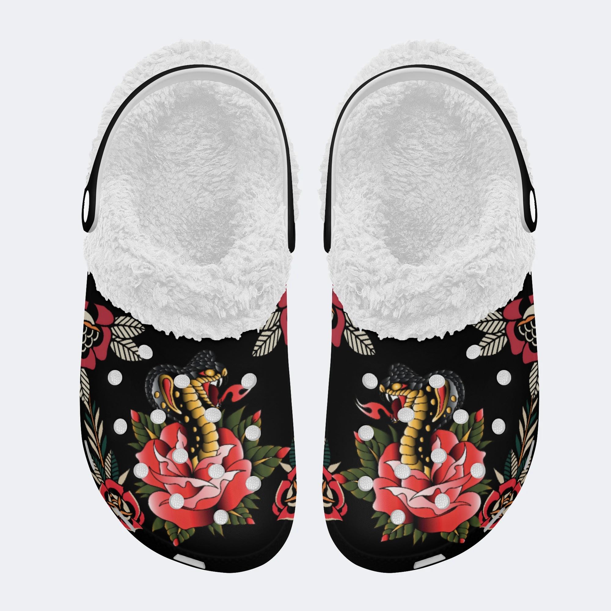Cobra&Flowers Print - Fur Lined Slippers/Sandals